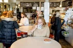 f your coffee cravings are as powerful as Lorelai Gilmore’s, a double dose of exhilaration is in store at this petite bakery and café on the green in Washington, the Connecticut town that inspired Gilmore Girls’ Stars Hollow. You’ll be looking at its historic architecture—not a TV set—as you sip one of chef-owner Maggie Colangelo’s playful beverages, like a latte swirled with her own Flirtation Farms lavender syrup. But whether you’ve settled at an outdoor table or on a stool at the old-time soda fountain, you’ll love sampling farm-fresh comfort food and binge-watching the goings-on at the hub of this small Litchfield Hills community. Read More